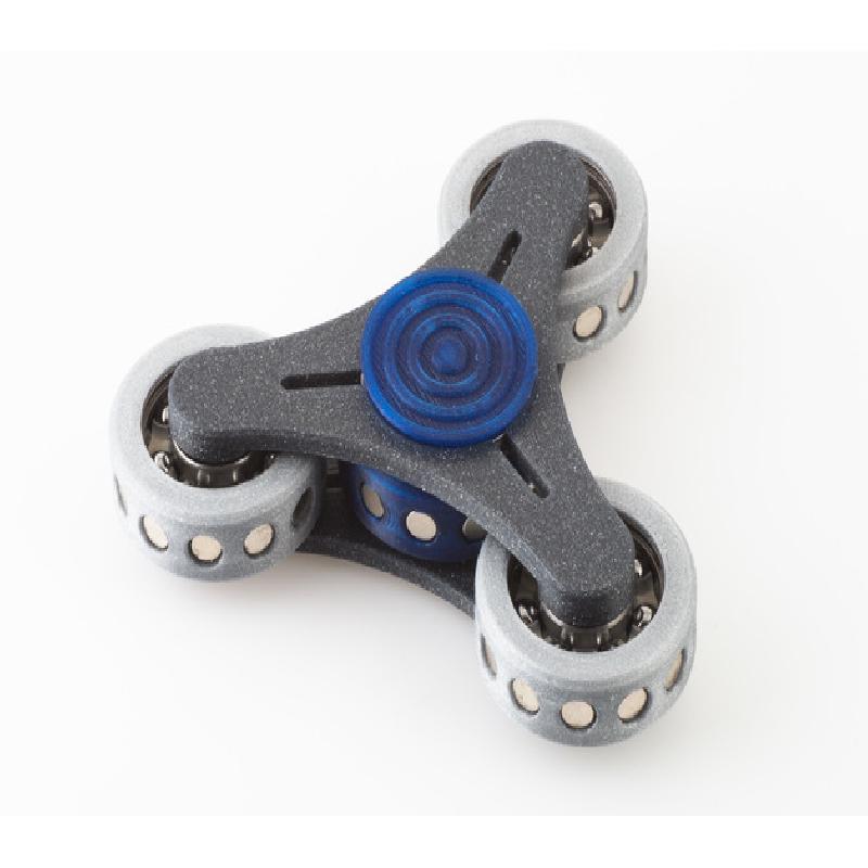 Geared fidget spinner based off of several other designs I've seen, I'm not sure where it originated from. The bearings are linked so spinning the case around the central bearing spins the outer bearings and vice versa. This one uses magnetic gears instead of traditional gears.