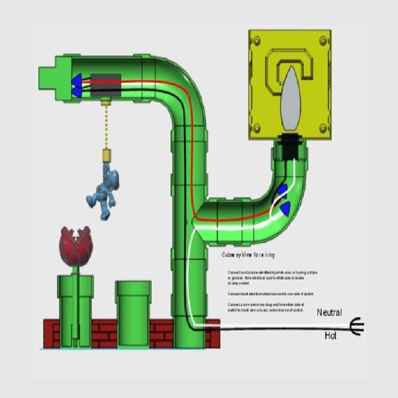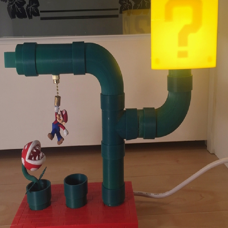 Print one of each of the other parts. There is an extra pipe (pipe_long) that I was going to use, but wound up using a medium instead. I left it in the upload just in case someone wanted a taller lamp. There are also 2 piranha plant stems, one straight and one curved. Take your pick.