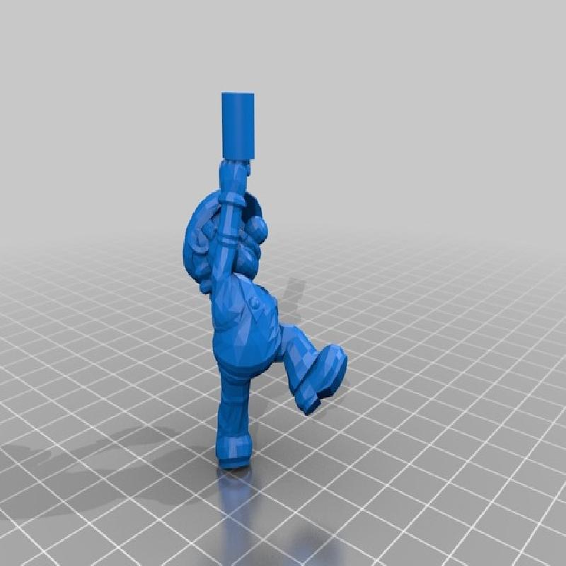 I used a free model of Mario called Mario (2) Trophy that I got from models-resources.com/download 3794. It was submitted by thegameexplorer and is from the game Super Smash Bros. Brawl. I had to do a bit of work on the .obj file before I could use it because it was open mesh. I wanted to modify it (to put the bead chain hanger on it). I also had to scale it up quite a bit because it was very small.