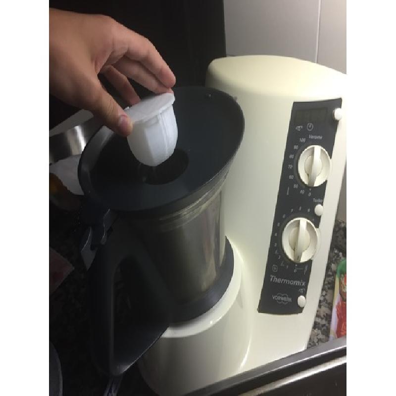 A thermomix cap, it fits well in the hole, and lets de steam get out.