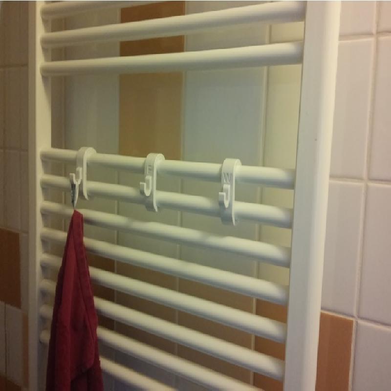 Simple towel hook which clips onto the radiator.