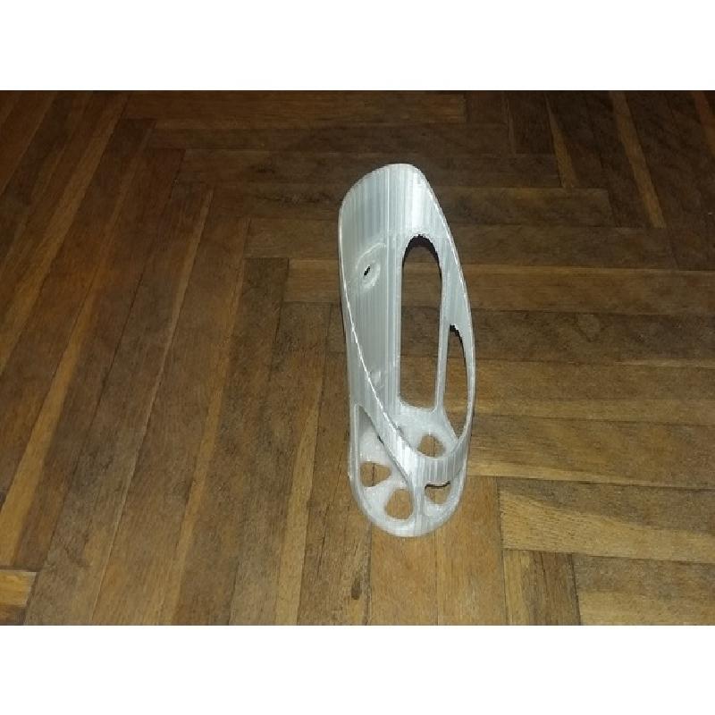 This is water cage for standart bikecylce holes for bottle cage. A distance between a holes is 65mm. I make one from PLA, but I dont know how many times will life.