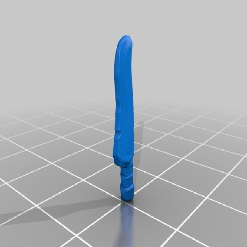 These STL files are designed to equip my Sculptris Dummies. You won't be able to import these files into Sculptris, though once you get your character posed, you can align these parts in any model staging platform (MakerBot Deskto, Blender, Meshmixer, or 3D Builder are all good choices). All of these parts are also available in Andrew Stockton's awesome Desktop Hero project as well (which is quite a bit easier than adjusting all the parts by hand). All of these weapons have been scaled to 28mm/Heroic scale, so they should be ready for any kind of miniature conversion if you want to print them separately.