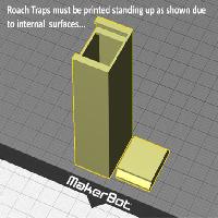 This is a simple print with no support required and they don't use a lot of filament. Print with translucent filament so you can see through the thin walls and see if there's a roach inside ( ...you can shake it and they often start scuttling around). Use 2 shells but high infill (50%) to make sure the walls are almost solid and strong... after all this is a Roach prison.