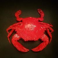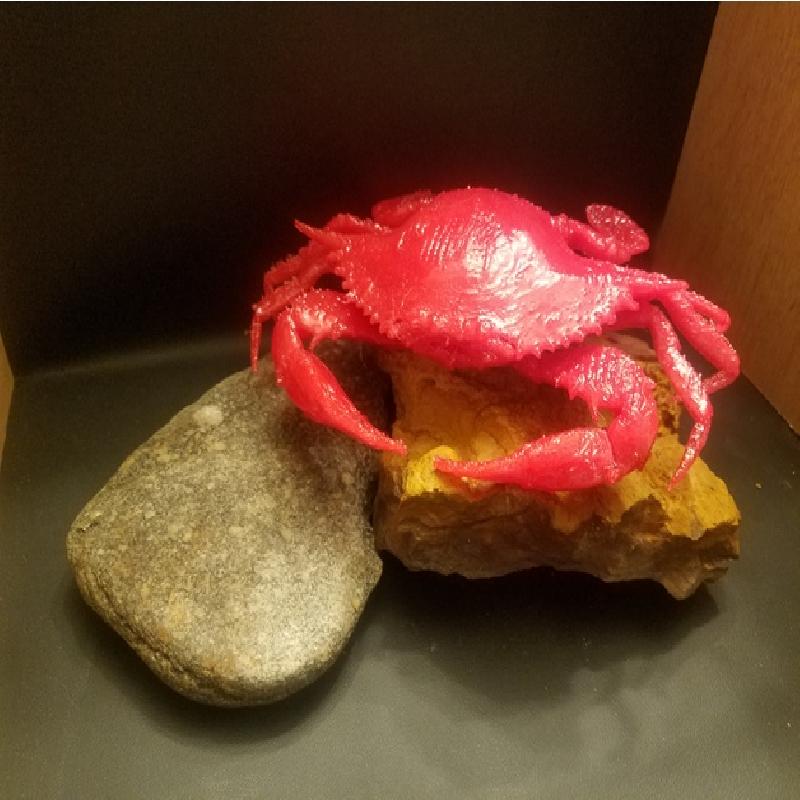 Model printed in translucent magenta PETG. Object was sliced upside-down with supports to ensure the legs came out well.