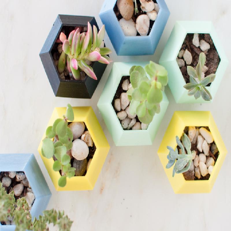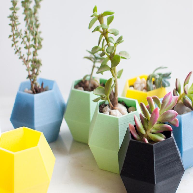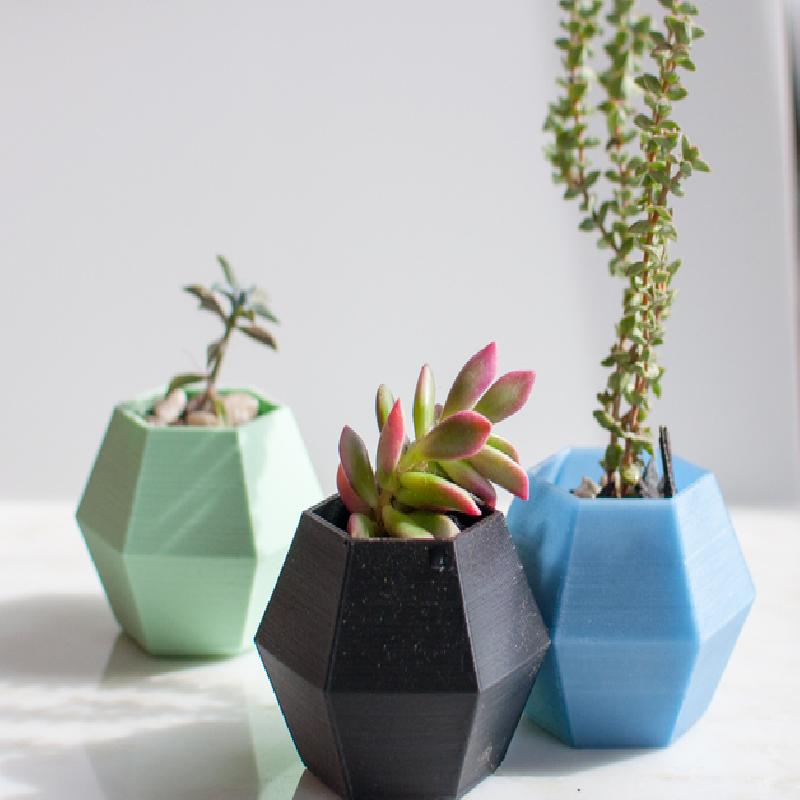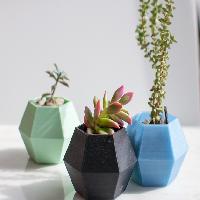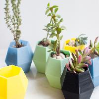 Small geometric planter for holding succulents and small desk plants. This planter can be placed in multiples to create a small succulent garden, or can also be used as desktop organizer to hold paper clips or SD cards. Designed for 3D printing with Autodesk Inventor Fusion.
