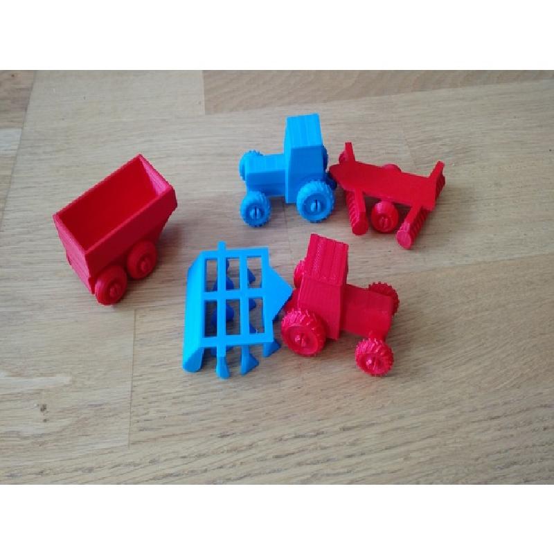 Tractor toys for children. There is a tractor, a trailer, a harrow and a cover crop. Have fun!