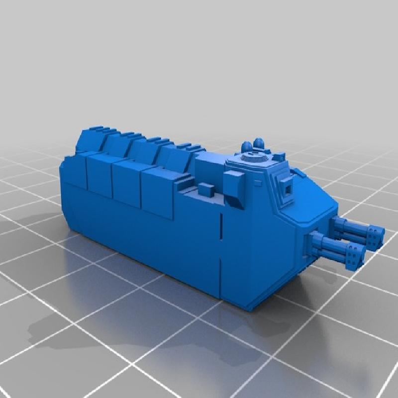 The Crassus Assault Transport is a superheavy IFV capable of transporting up to 35 soldiers quickly through heavy fire. Four heavy weapons allow for softening up of all but the most fortified positions before its passengers disembark.