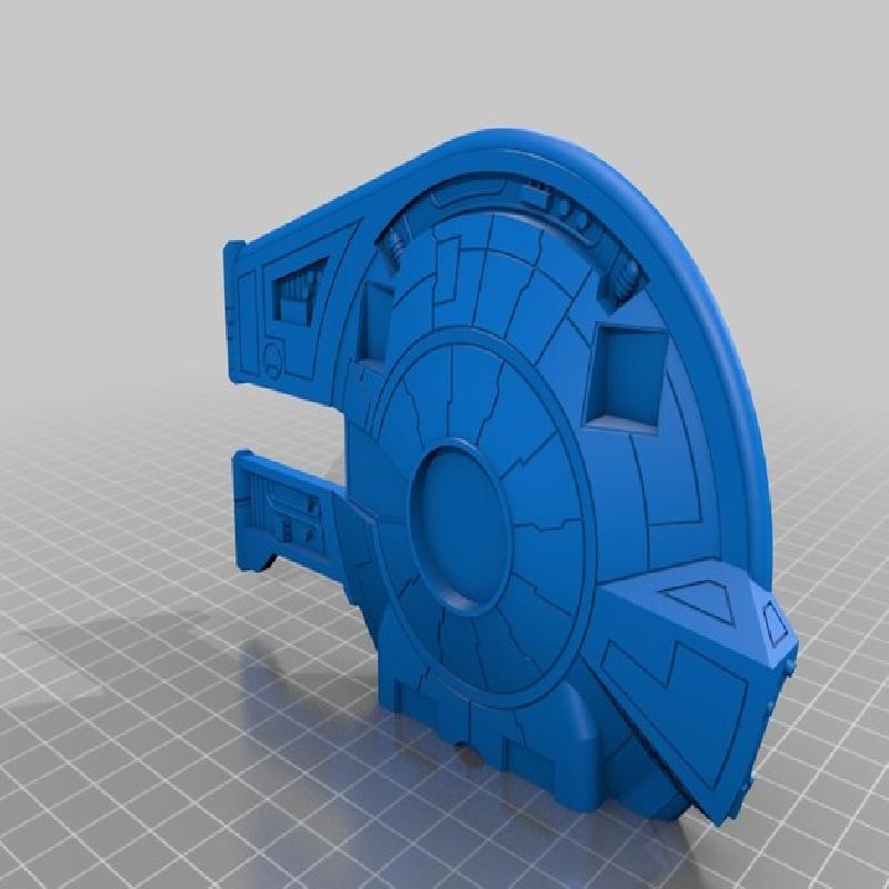 I had been looking for a YT-2400 to print out and use as terrain for my roleplaying group, and was just not satisfied with what I found, so I took the dimensions from YT-2400 (Outrider) by the24hrpartyzone and remodeled it based on my own whims. Fortunately with all the different depictions of star wars ships you can pretty much choose what features you like and mash them together into one ship! And wow, hull panels are a pain to draw!
